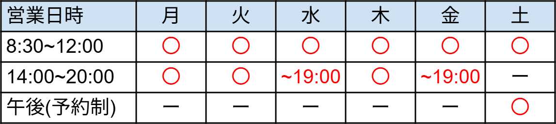 - ■初検時または月初めに、保険証が必要ですのでご持参ください。カード型保険証は、来院ごとにご提示ください。